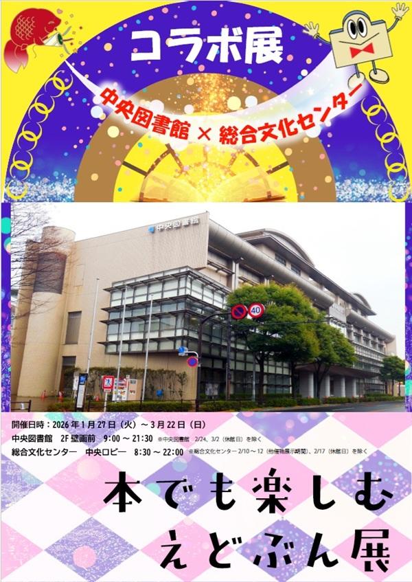 | 公演日時 | 日にち: 2026年1月27日(火)~3月22日(日) ※中央図書館 2/24、3/2(休館日)を除く ※総合文化センター 2/10~12(他催物展示期間)、2/17(休館日)を除く 時間: 中央図書館 9:00~21:30 総合文化センター 8:30~22:00 |