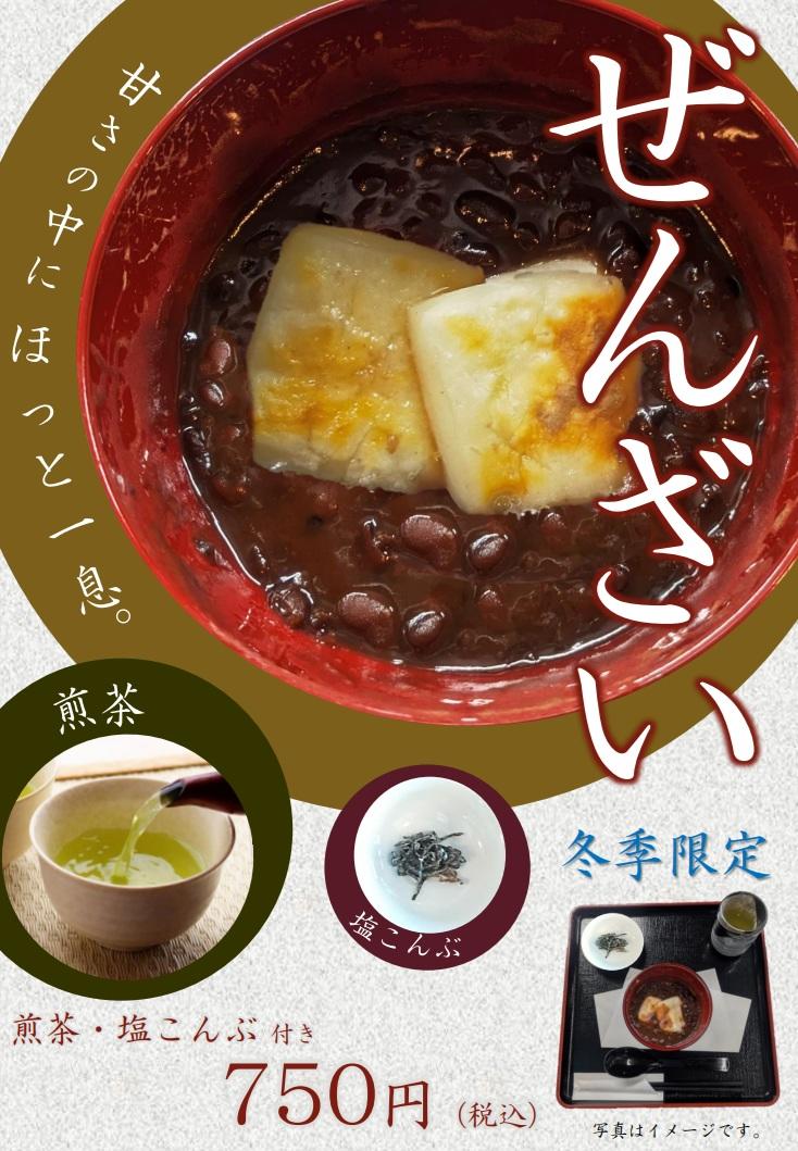 カフェ&レストラン百花百兆で、12/1(月)より 冬季限定デザート「ぜんざい」が登場いたします!! 寒い季節にピッタリの、温かいお餅の入ったぜんざいに、 煎茶と塩昆布付きで、さらにお楽しみいただけます。 小腹が空いたときや、温まりたいときにおすすめの一品です。...
