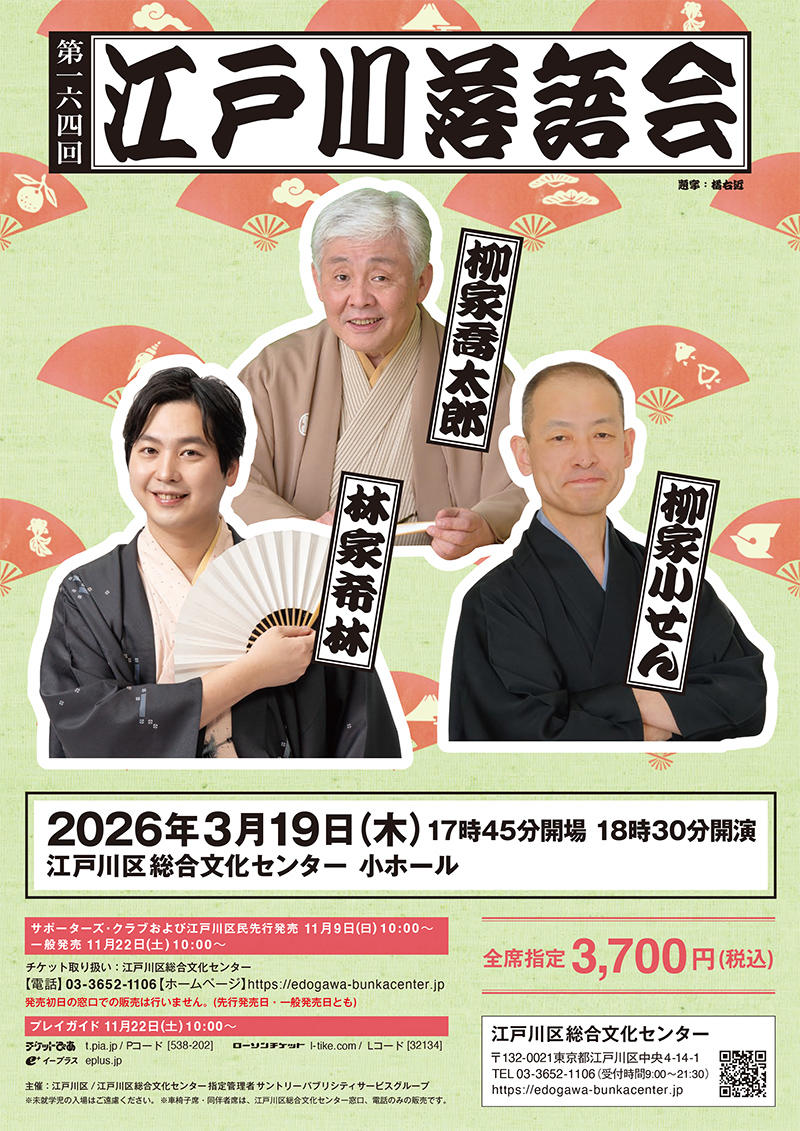 第164回江戸川落語会【11/9(日)よりサポーターズ・クラブ、区民先行発売開始!】